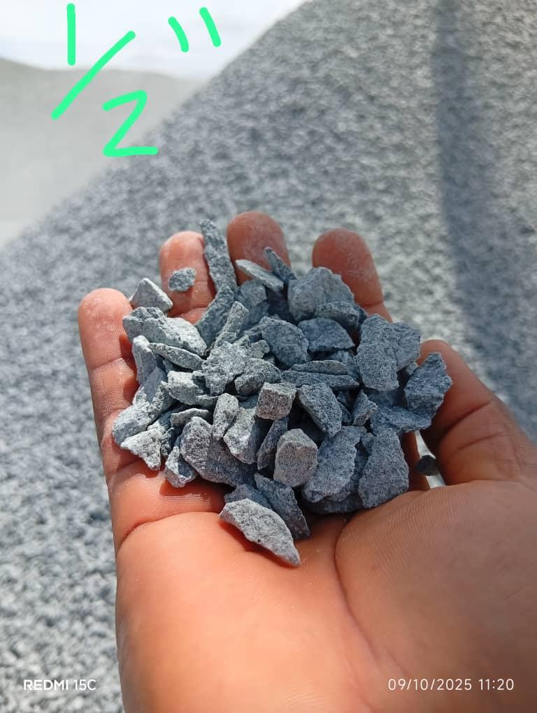 1/2 inch granite chippings are medium-sized crushed stones commonly used for parapet casting, pillars, lintels, compound floor blinding, and other structural concrete works. They are cleaner and more refined than larger aggregate sizes, making them ideal for detailed and reinforced construction work. They provide excellent bonding with cement and ensure a smooth concrete mix finish.